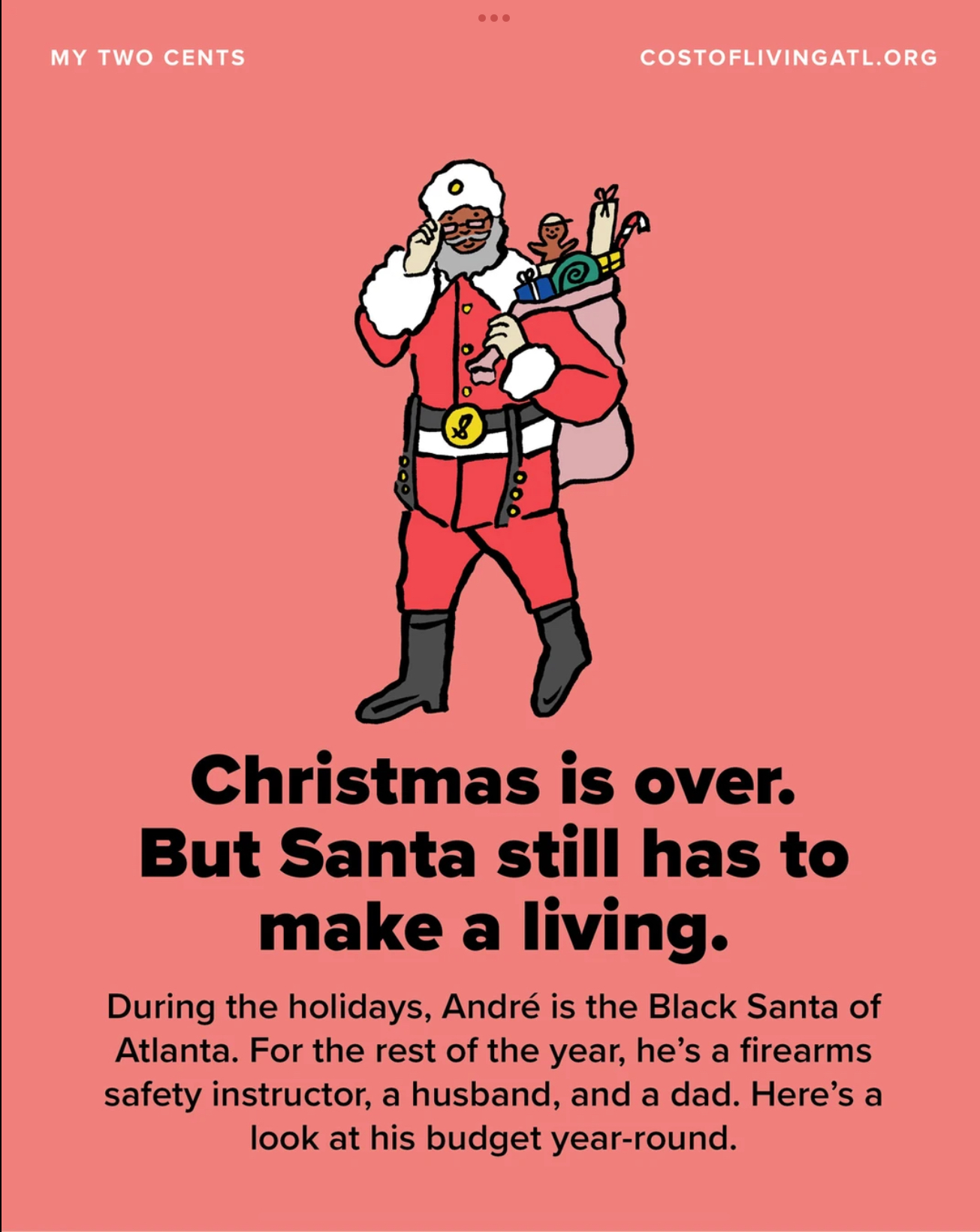 Christmas is over. But Santa still has to make a living. During the holidays, André is the Black Santa of Atlanta. For the rest of the year, he’s a firearms safety instructor, a husband, and a dad. Here’s a look at his budget year-round.